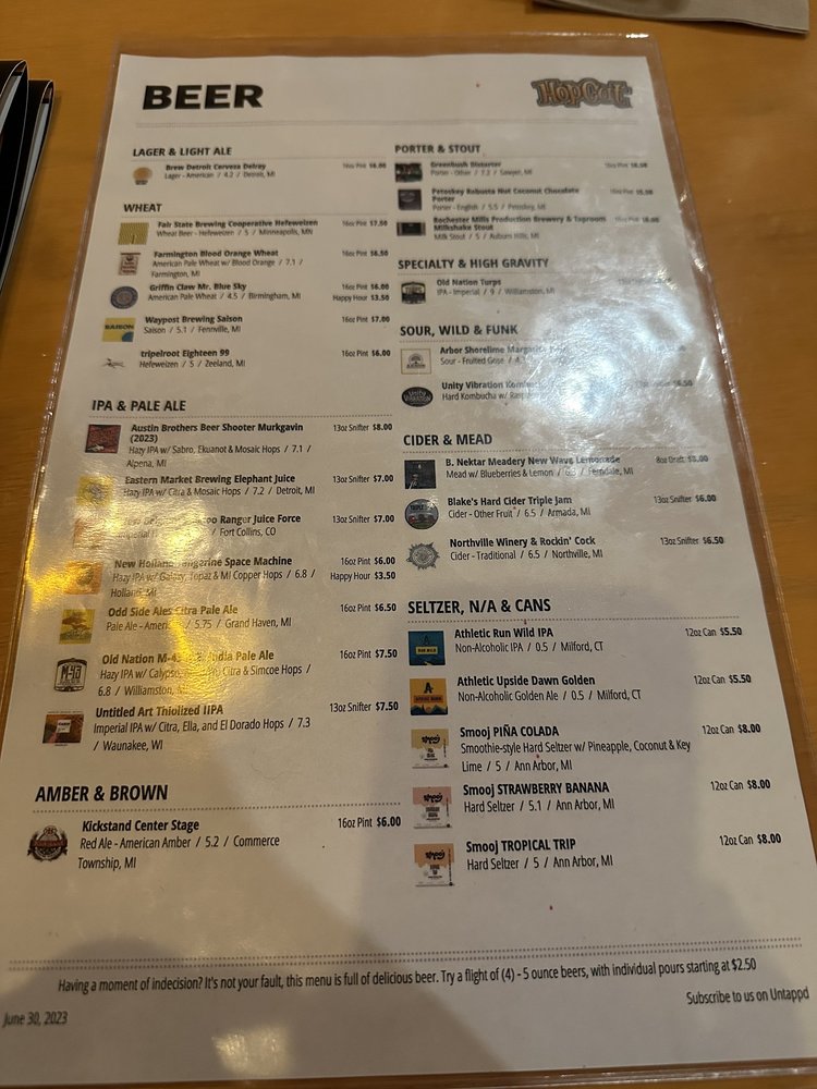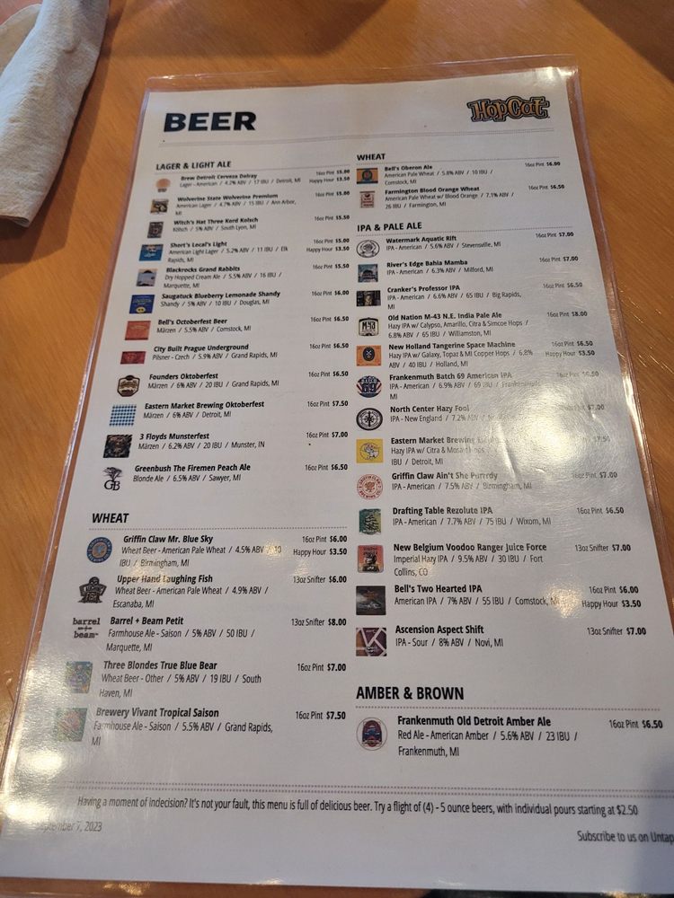HopCat Menu