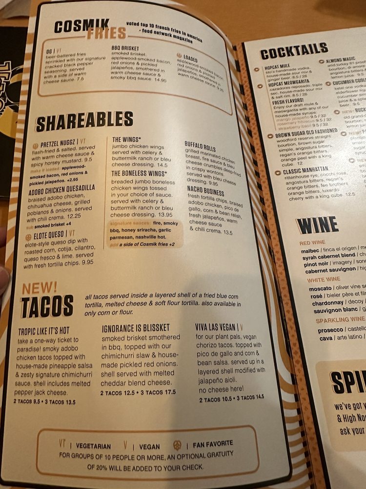 HopCat is a renowned beer bar in Royal Oak, MI, offering a variety of shareable items, burgers, and sandwiches. The Cosmik Fries, loaded with warm cheese sauce, bacon, onions, and jalapeƱos, are a fan favorite, while the Mushroom Swiss burger and Hangover Helper burger are standout options. The Turkey Pesto Grilled Cheese sandwich and Italian Grilled Cheese sandwich are also highly recommended. Customer reviews praise the delicious food and quick service at HopCat, with highlights including the American smashburger, loaded Kosmik fries, Killer Mac, and Tikka Masala fries. The mac & cheese, truffle fries, and grilled cheese have received high praise as well. The inviting atmosphere and attentive bar staff add to the overall experience, making HopCat a must-visit for beer and burger enthusiasts.